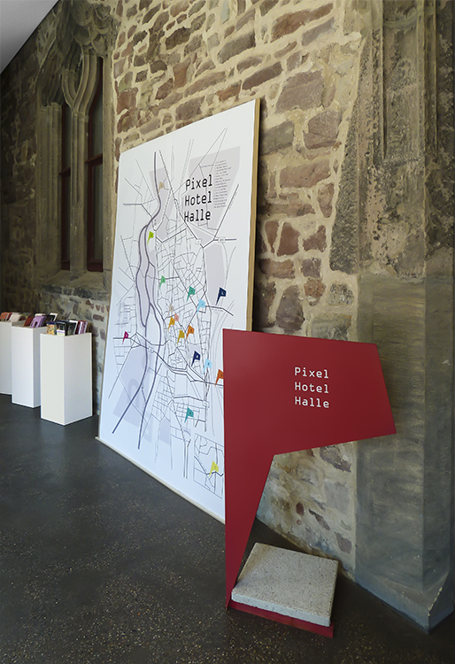 Im Anschluss an das Innenarchitektur-Semesterprojekt „Pixelhotel“ an der Burg Giebichenstein wurden die studentischen Arbeiten im Foyer der Stiftung Moritzburg – Kunstmuseum Halle ausgestellt. Die Herausforderung bestand darin, den experimentellen Charakter der Projekte sichtbar zu machen und zugleich einen angemessenen Dialog mit dem repräsentativen Museumsraum zu entwickeln. Ziel war eine Präsentationsform, die unabhängig von der bestehenden Architektur funktioniert, flexibel einsetzbar ist und mit einfachen Mitteln realisiert werden kann. …