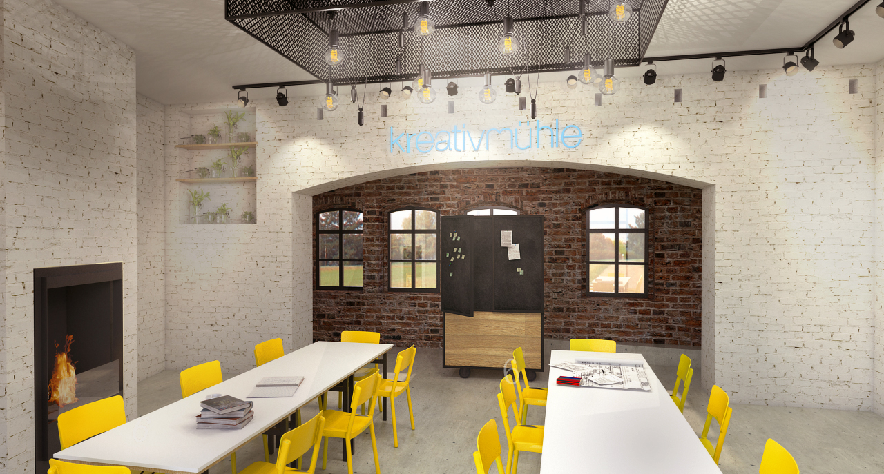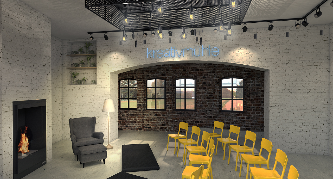 der „Kreativmühle“ ein öffentlich nutzbarer Ort für Bildung, Kreativangebote, Café- und Loungeformate sowie Märkte.